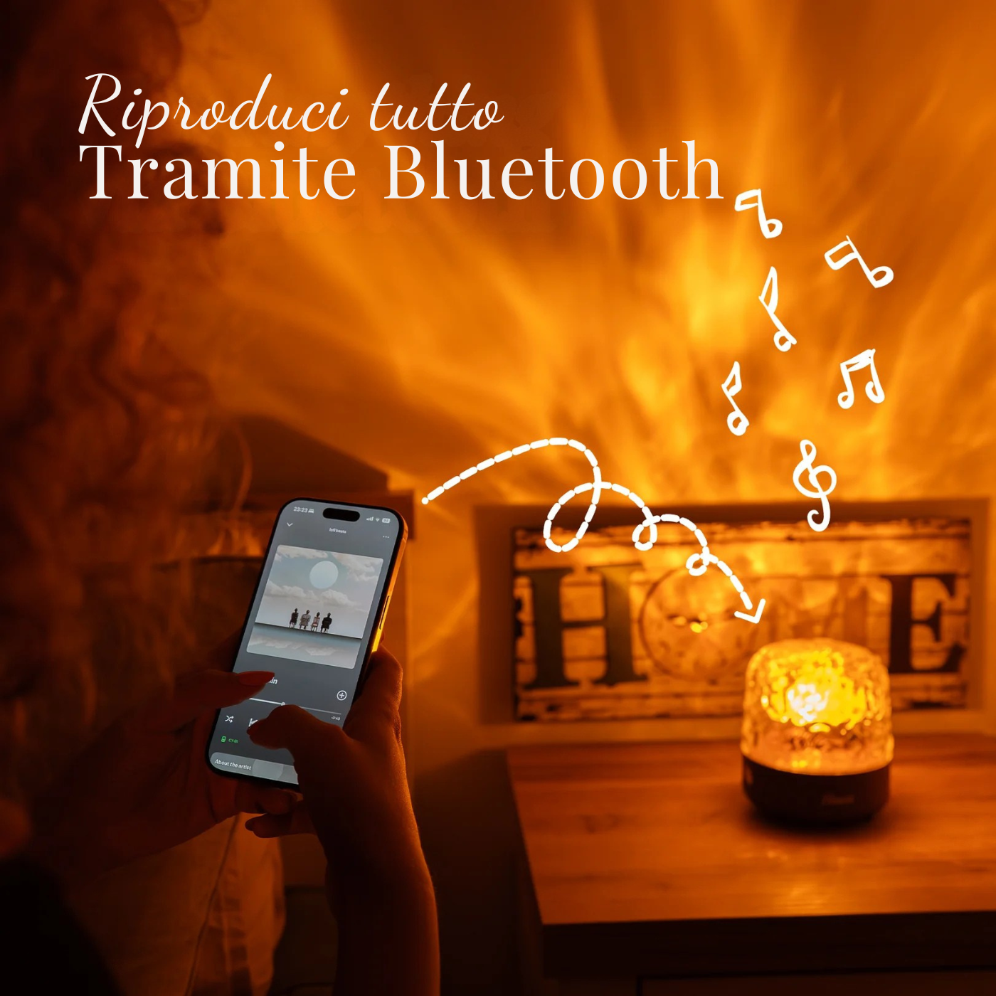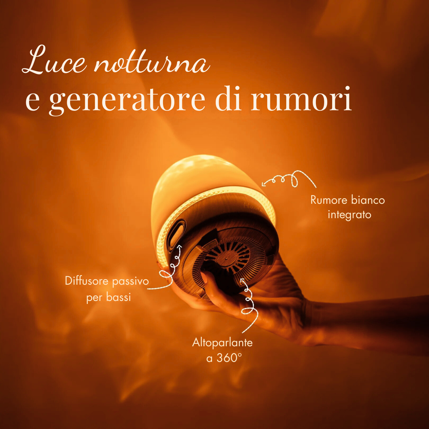 questa lampada diffonde delicatamente un suono rilassante in ogni angolo della stanza,